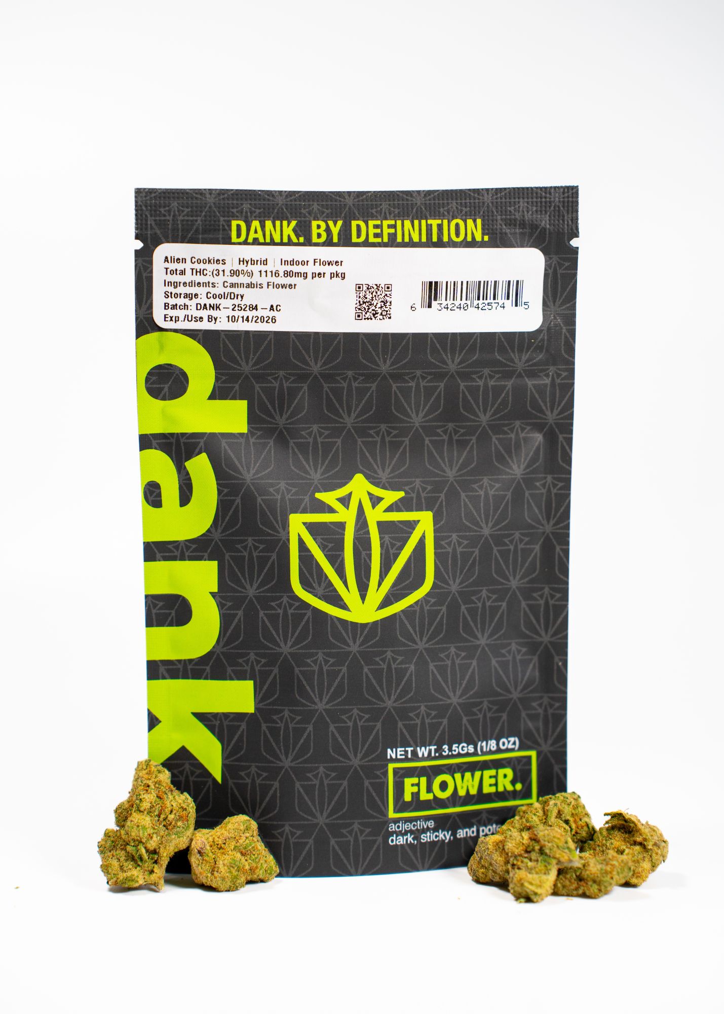 Alien Cookies Alien Cookies, an exceptional cultivar in the cannabis world, comes to life through the careful genetic crossing of GSC (formerly known as Girl Scout Cookies) with the powerful Aliendawg strain. This highly sought-after variety stands out with its visually striking appearance, featuring densely packed, dark-colored buds completely enveloped in a glistening layer of crystalline trichomes. The strain's complex terpene profile delivers an intriguing combination of deep, earthy undertones perfectly balanced with sweet, creamy vanilla notes that linger on the palate. Given its limited availability in the market and the intricate cultivation process required to achieve its distinctive characteristics, cannabis enthusiasts who encounter Alien Cookies should consider themselves fortunate and take time to fully appreciate this remarkable genetic achievement.. Feelings: Aroused, Relaxed, Hungry
