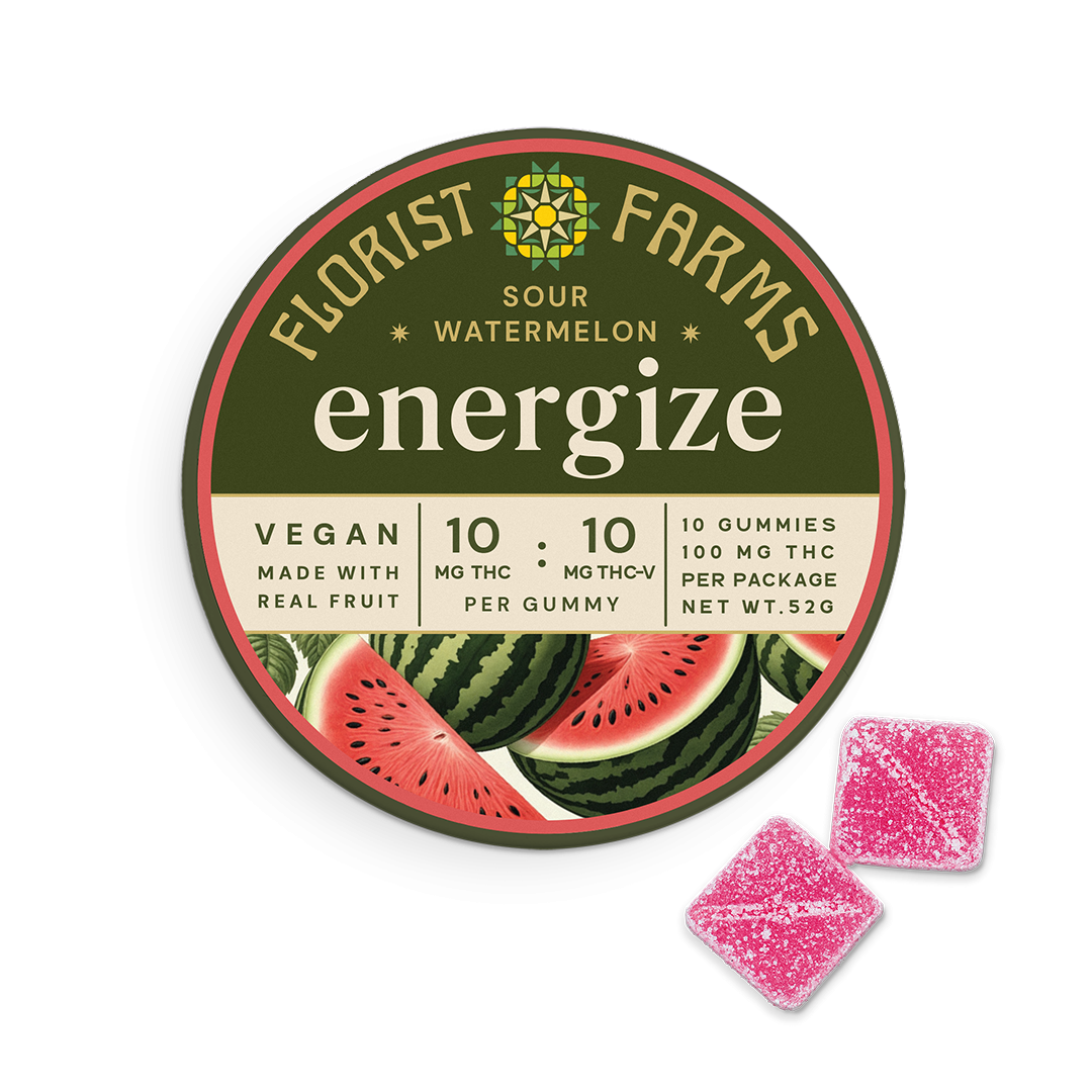 Ingredients: Organic Tapioca Syrup, Sugar, Water, Juice Concentrate, Fruit Pectin, Natural Flavoring, Citric Acid, Sodium Citrate, THC Distillate, THCv Isolate, Malic Acid, Organic Sunflower Oil