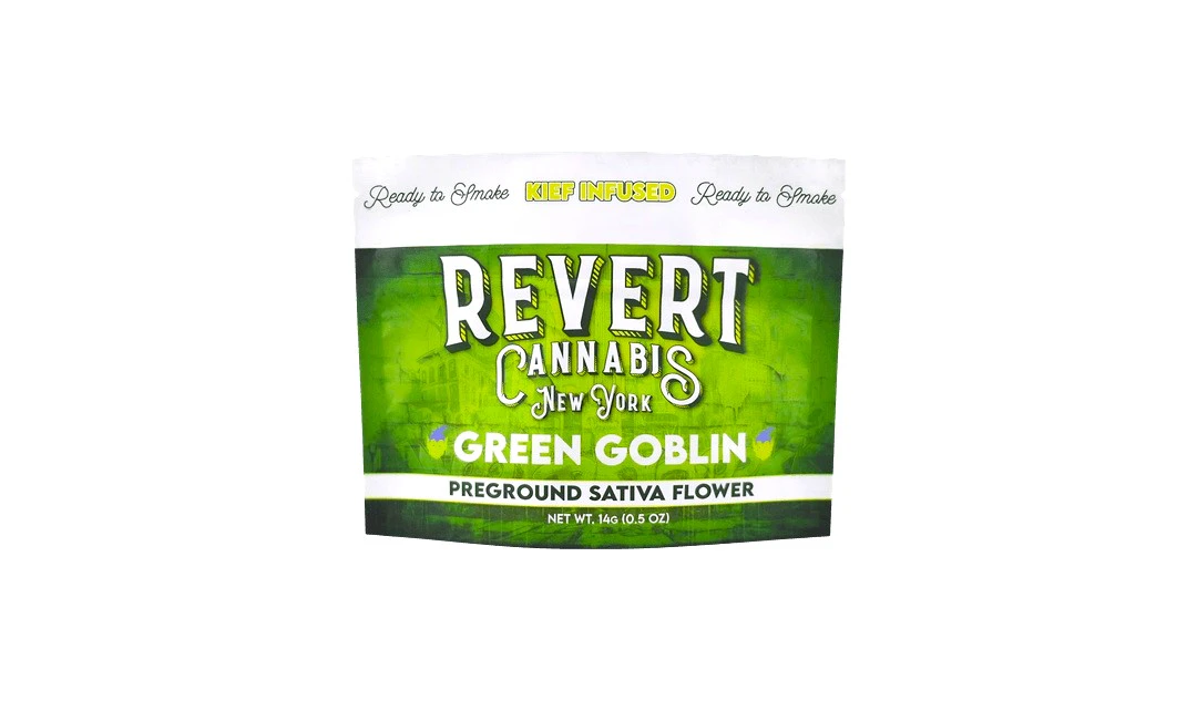 Elevate your experience with Revert Green Goblin Kief-Infused Ground Flower, a 14g pack of ready-to-use, premium sativa flower blended with potent kief for an extra boost in both flavor and potency. This expertly crafted mix delivers energetic, uplifting effects perfect for creative sessions, social vibes, or powering through your day.