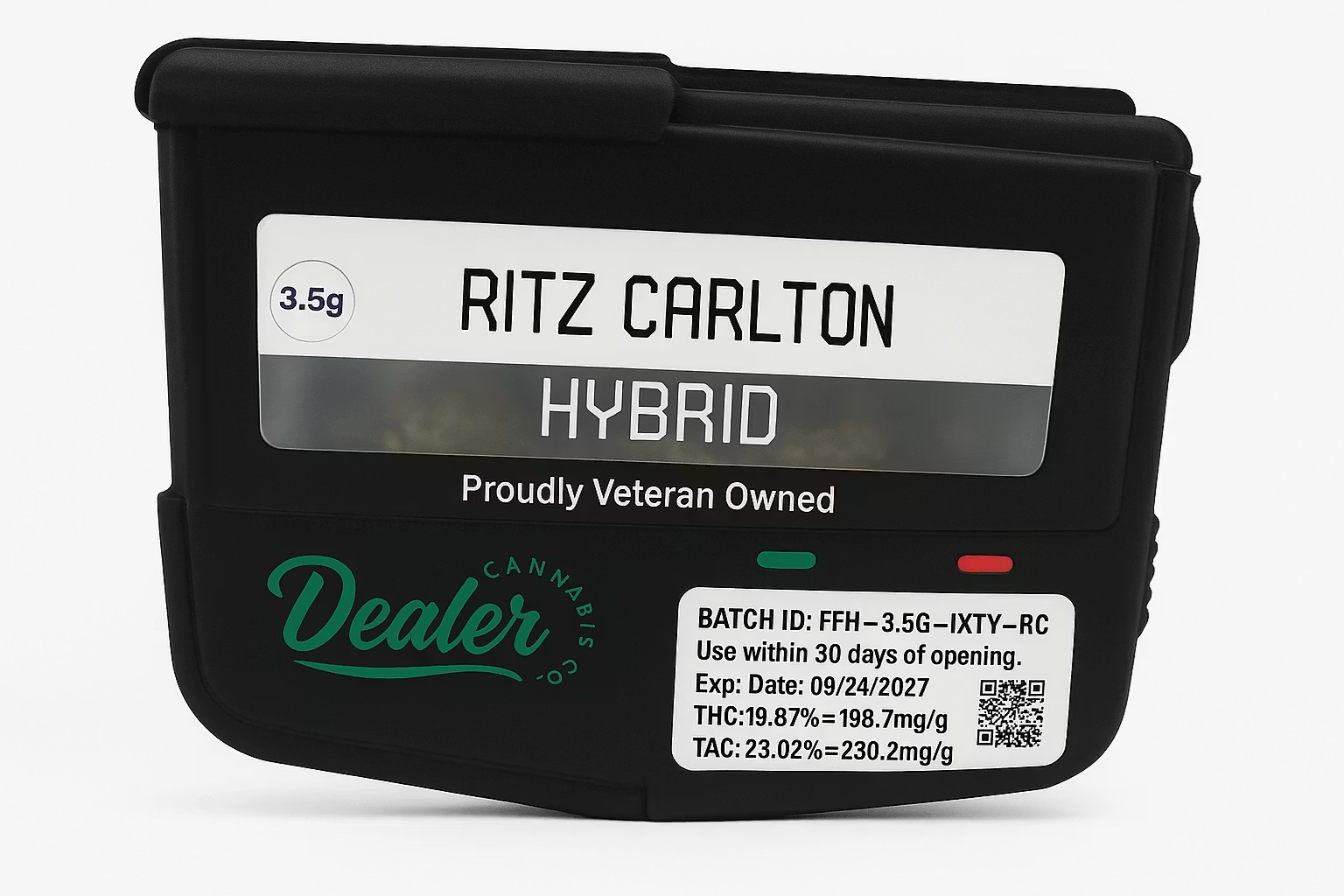 Ritz Carlton is a luxurious indica-leaning hybrid born from the cross of Rainbow Belts 2.0 #37 and Gelato #41. This strain delivers a deeply soothing, full-body relaxation that melts away tension while keeping the mind calm and creative. Its fruity, dessert-like flavor carries notes of sweet candy and creamy gelato, making it a perfect evening strain for unwinding after dinner or settling in for a movie.