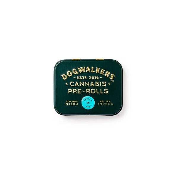 [orig: Face Off OG x Animal Mints] is a potent indica-leaning strain with a complex flavor profile of sweet mint, citrus, and nuts with hints of pine and diesel. Dogwalkers Infused Show Dog "SIT" Mini 5 Pack Pre-Rolls offer a total of 2.25g indica-leaning flower infused with best-in-show crumble. Conveniently packaged in an on-the-go tin, each .45g Mini Show Dog (five total) is always crafted with strain-specific premium flower and crumble; never shake, stems or seeds. Dogwalkers donates a portion of proceeds from every product sold to deserving animal shelters across the country.