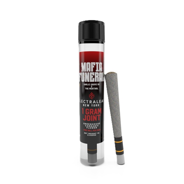 Mafia Funeral is a bold hybrid born from Garlic Grove 55 × The Menthol, created by Compound Genetics. It’s a strain that marries sharp menthol freshness with savory garlic and citrus overtones. The aroma is striking — think menthol air freshener, zesty citrus, and pungent garlic layered over a gas baseline. The flavor follows suit: citrus soda and gelato sweetness hit early, while garlic, spicy fuel, and earthy undertones anchor the finish