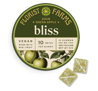 Bliss: Sour Green Apple | Gummies | 100mg/10 Pieces | Florist Farms