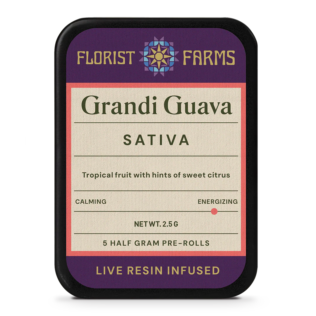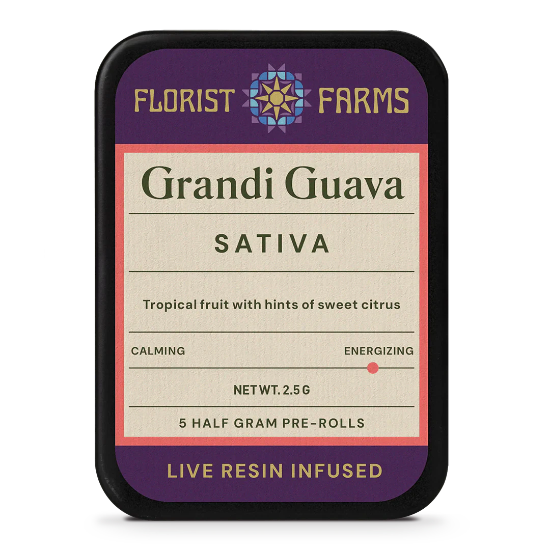 Grandi Guava | Live Resin Infused Pre-rolls | 0.5g 5pk | Florist Farms