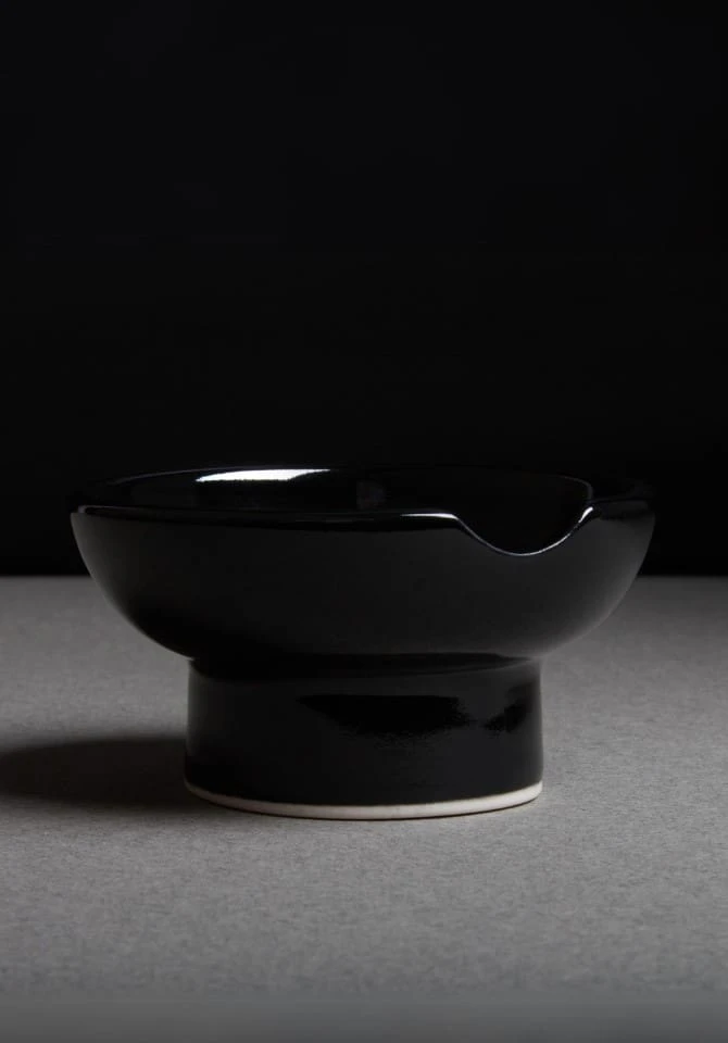 The stunning design of our black ashtray isn't just for aesthetics. The wide, shallow bowl is perfect to grind directly into, or stir up a mix of multiple ingredients for a gourmet sesh. The curve in the bowl ensures super easy packing for your one hitter. Plus, the strategically placed divet makes filling pre-rolled cones effortless. Fill the bowl with your mix and just pour it in. No more spilling it onto the countertop or on a tray. Finally, when you're done packing your pipe or cone, just pick the bowl up by its charming little foot and pour any leftovers right back into your storage container.