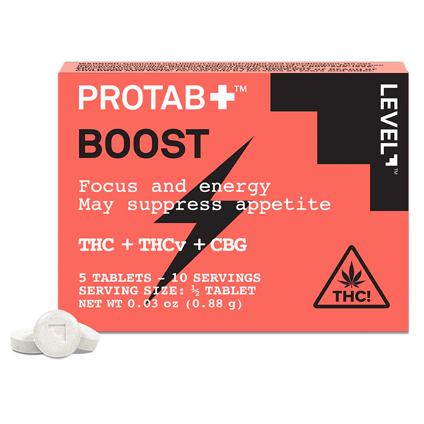 For those times when you need the focus and energy to make it through your day, Boost’s precisely combined highly functional cannabinoids may provide the powerful effect you desire. Each tablet contains 20 mg delta-9 THC, 7 mg THCv, 3 mg CBG, and 2 mg of THCa that take effect in 30–90 minutes, with a duration of 3–6 hours. Don’t assume your normal edible dose is your Protab+ dose. Start with half or one, and then work up from there. LEVEL tablets are scored to be easily split in half.
