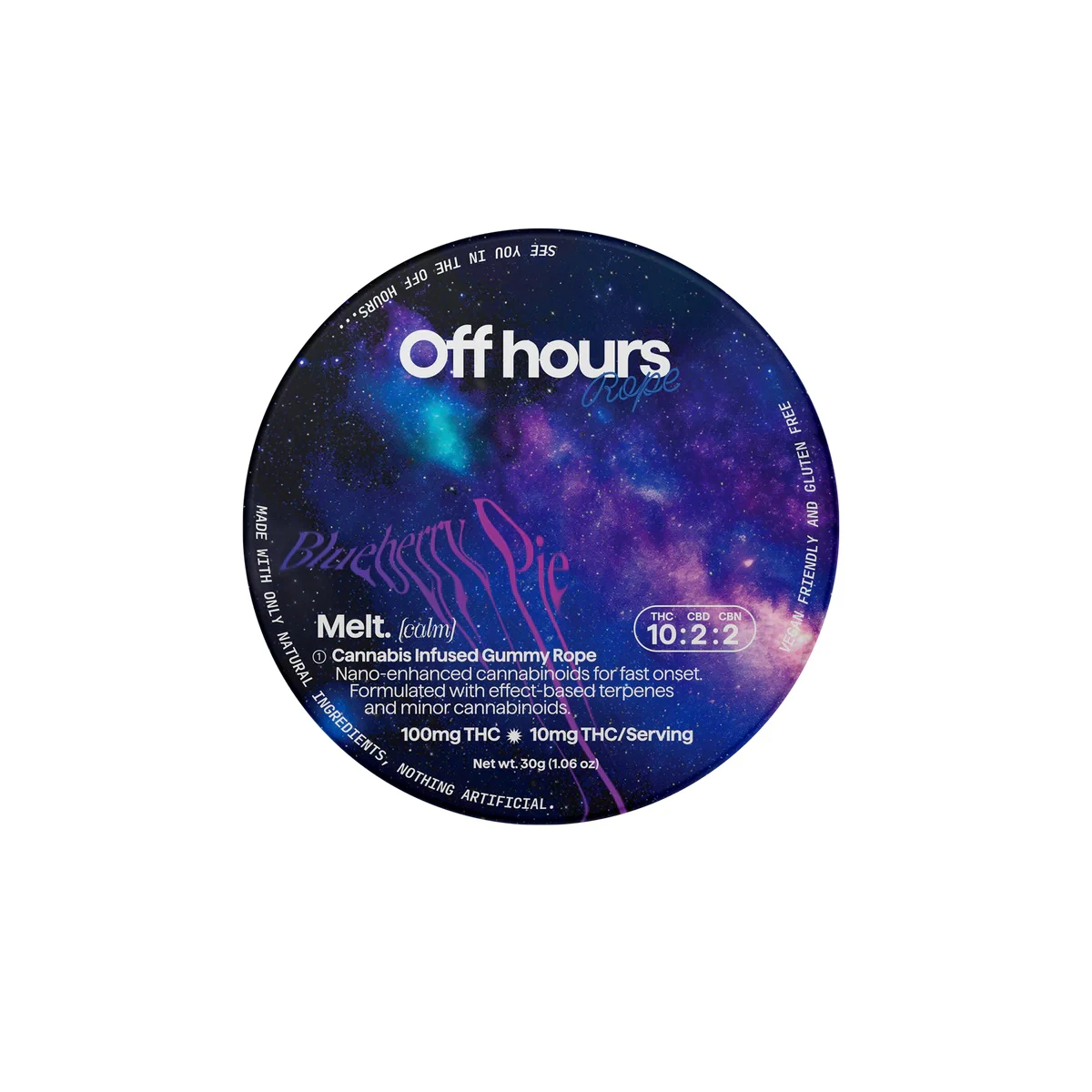 Experience deep relaxation with our Blueberry Pie Melt ropes. Specially formulated with THC, CBD, and CBN to help you melt.