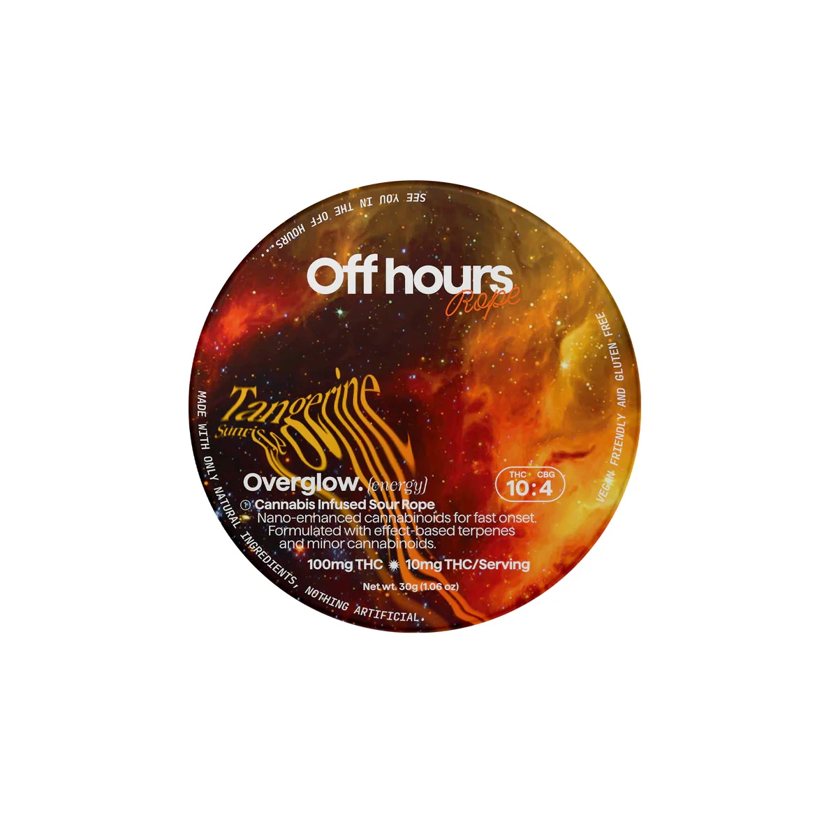 Off Hours Tangerine Sunrise Overglow ropes are the perfect pick me up throughout your day. Specially formulated with an energizing blend of THC and CBG for a happy, uplifting high.