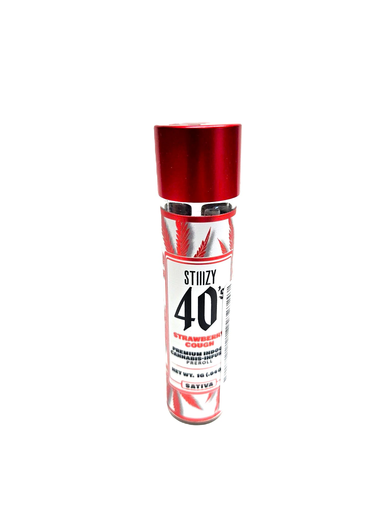 Elevate your pre-roll game. STIIIZY 40's pre-rolls are setting the standard with high potency, cannabis infused joints coated evenly with kief. Using our proprietary live resin infusion methods, we've designed every pre-roll to offer 40%+ THC potency with a unique flavor profile. With a smooth inhale and tasteful exhale, each and every STIIIZY 40's is packed with indoor grown flower, specifically made to ensure a potent and long-lasting high. Spark up the 40's.